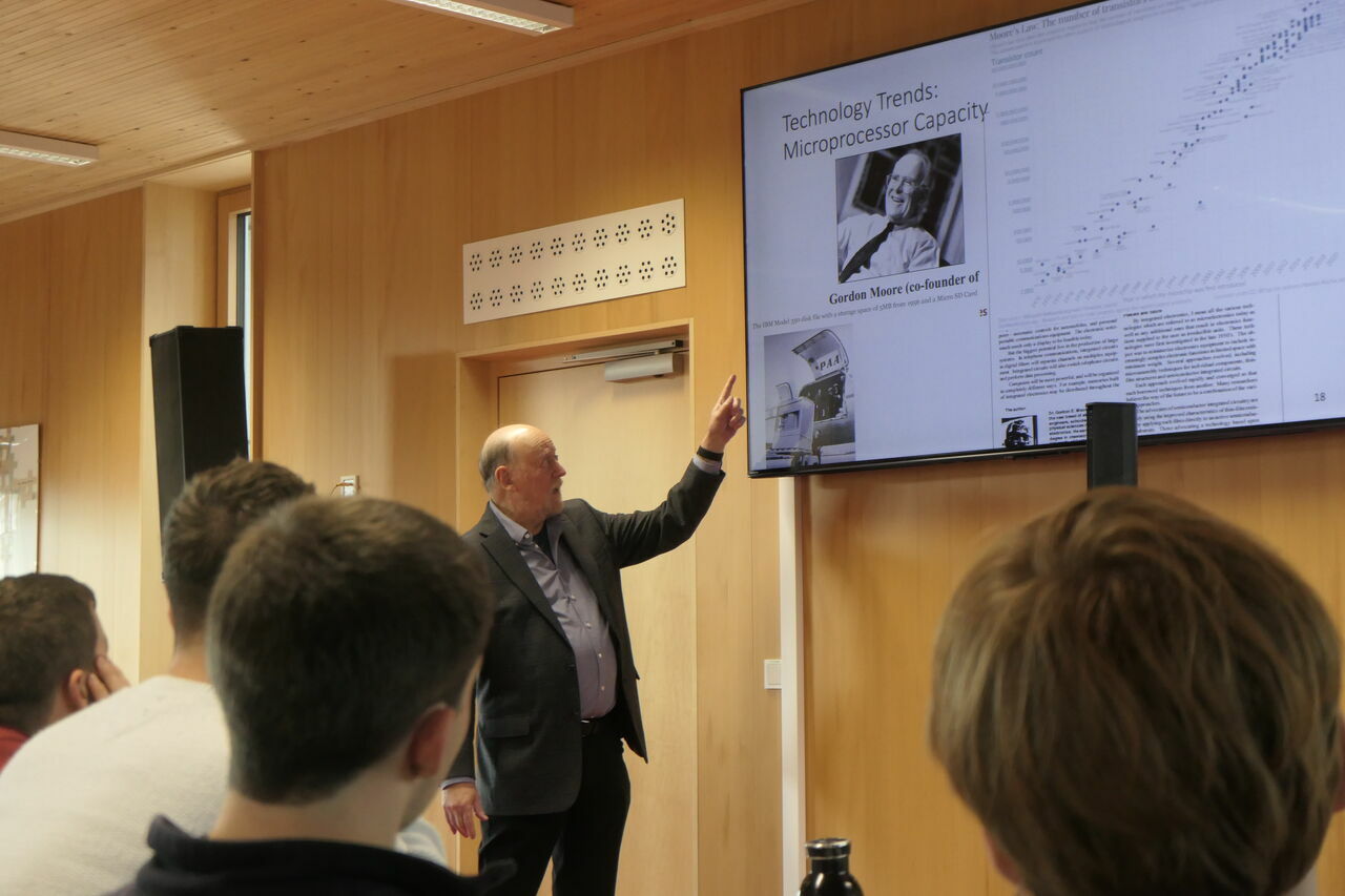 Am 17. September 2025 besuchte Professor Dr. Jack Dongarra, Träger des Turing Awards – der „Nobelpreis der Informatik“ –, das Ursulinen Gymnasium. In seinem Vortrag sprach er über Supercomputer und deren parallelisierte Kommunikation.