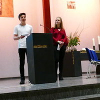 Im anschließenden Interview nahmen Fabienne Dumont und Katarina Marijanovic diesen Faden auf. Ob denn die Kirche tatsächlich Jugendlichen auch genug zutraue? Jessica Berg und Leo Orschiedt wendeten diese Perspektive ins Persönliche: Wie es denn mit Bruder Timothées Zutrauen in die Kirche bestellt sei, und wie es ihm da selbst als Jugendlichen ergangen sei?