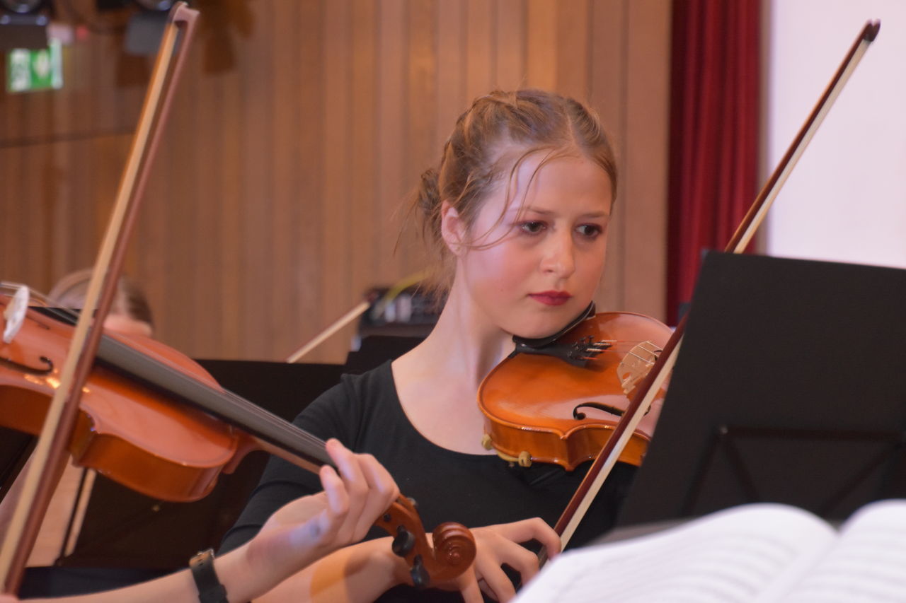 Unsere jüngsten Musiker, die Schüler der Bläserklasse, durften unter der Leitung Herr Loewens diesen musikalischen Abend eröffnen. Ein Menuett von Haydn sowie der „Banana Boat Song" stimmten auf die kommenden Beiträge ein. Auch die Streicherklasse 6b präsentierte uns ihr Können, dass sie nach zwei Jahren Unterricht mit Frau Bellinger erarbeitet hatten.