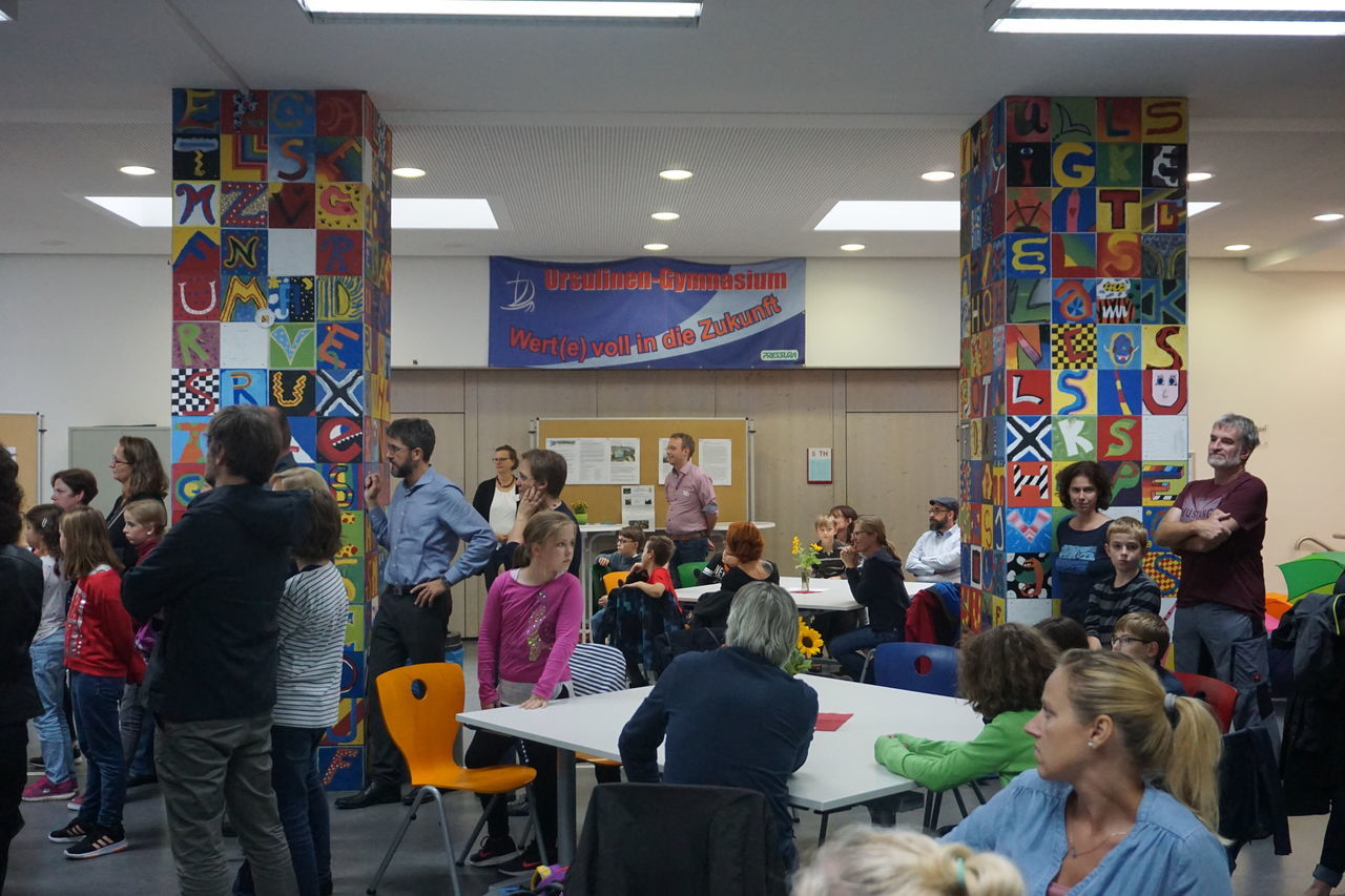 In diesem Sinne lud der Förderverein am Freitag, 27. September, auch in diesem Jahr zum Kennenlernnachmittag ein, bei dem Eltern und Lehrkräfte der neuen Fünftklässler in gut organisiertem und gemütlichem Rahmen bei Kaffee und Kuchen ins Gespräch kamen, während ihre Sprösslinge in der Turnhalle beim Mitmachzirkus erste Freundschaften auf dem Gymnasium festigen oder schließen konnten.