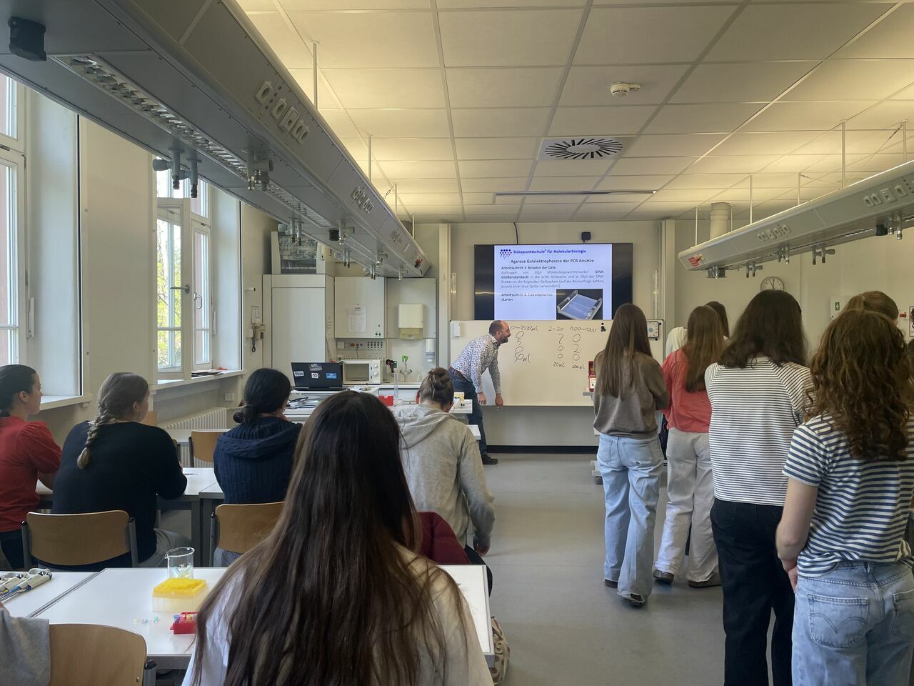 Im Rahmen unseres Schülerpraktikums im Biologie-Leistungskurs der Kursstufe 1 am Feudenheim-Gymnasium, der Stützpunktschule für Molekularbiologie in Mannheim, stand am 17. April 2026 alles unter der spannenden Leitfrage: „Who’s your daddy?“Nach einer kurzen Begrüßung sowie einer Sicherheitsbelehrung starteten wir direkt mit ersten Pipettierübungen. Dabei waren vor allem Präzision, Konzentration und Geduld gefragt, da mehrere Versuche erforderlich waren.