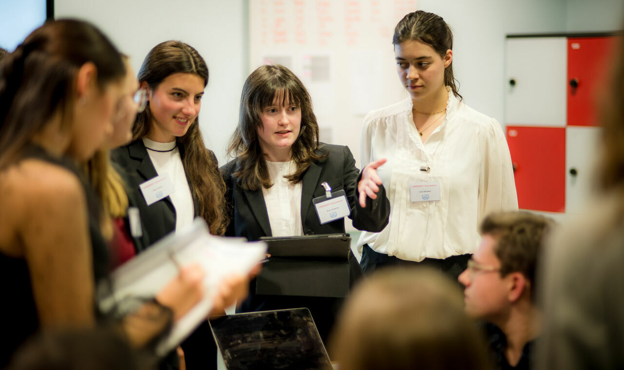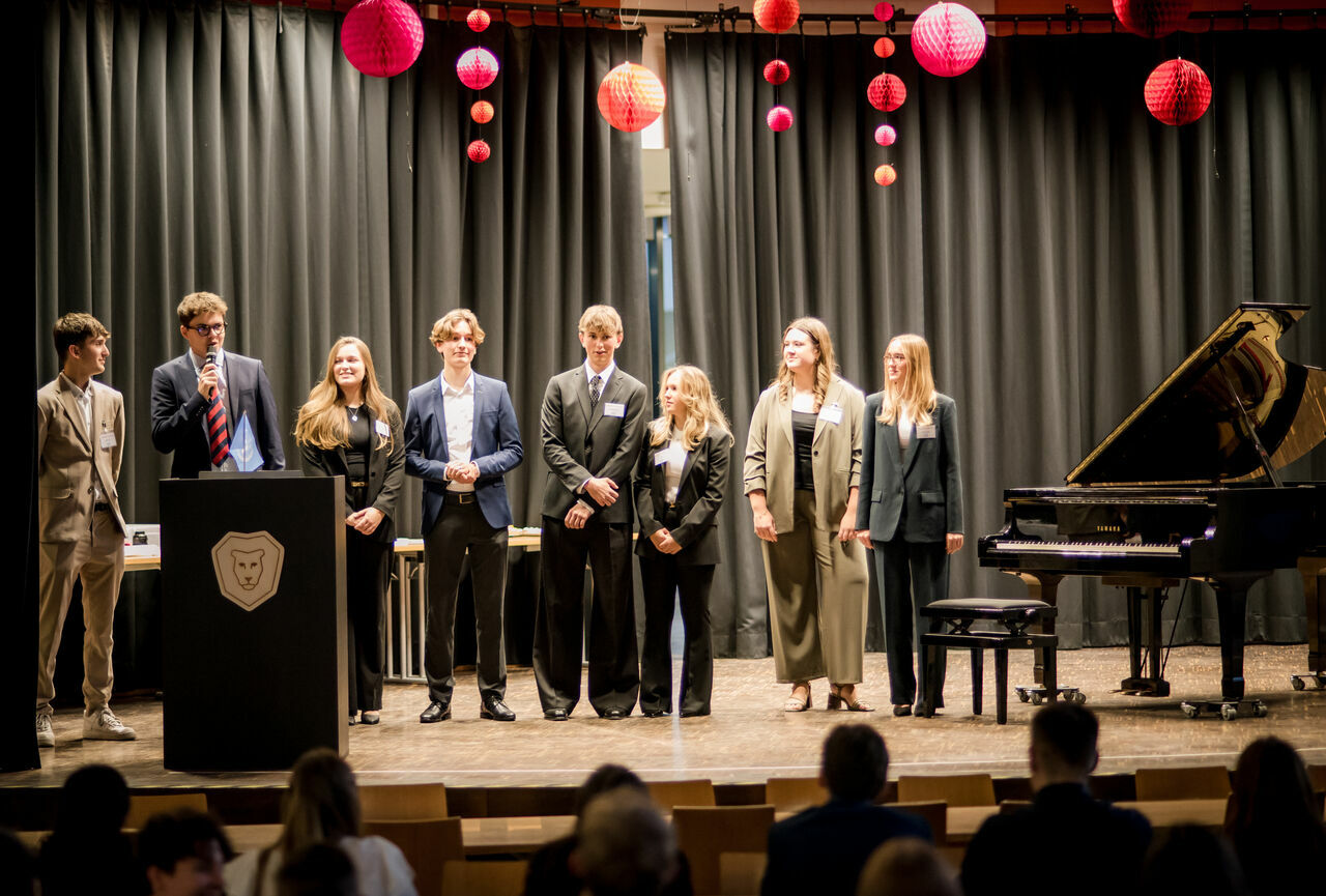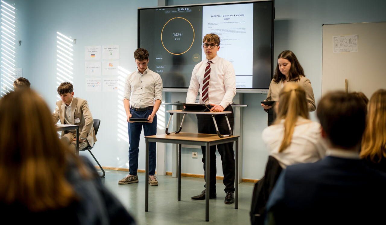 Am zweiten Tag ging es vor allem darum, die erarbeiteten Vorschläge weiter auszuformulieren und zu schärfen. In den Komitees wurde konzentriert verhandelt, Formulierungen wurden angepasst und Kompromisse gesucht, bis schließlich fertige Konzepte entstanden, die dem gesamten Plenum vorgestellt und diskutiert wurden. Zum Abschluss des Planspiels wurden die Ergebnisse noch einmal zusammengefasst und gewürdigt. Außerdem wurden herausragende Leistungen geehrt. Dabei konnten sich auch einige Teilnehmende unserer Schule über Preise freuen: In den Kategorien Best Delegate, Honorable Mention sowie Best Speaker gingen Auszeichnungen an Schüler und Schülerinnen des UGM. So erhielten Constantin Becker (KS 2) und Vasilena Nazarova (KS 1) den Preis „Best Delegate” und Karla Lutz (KS 2) die Auszeichnung „Honorable Mention”.