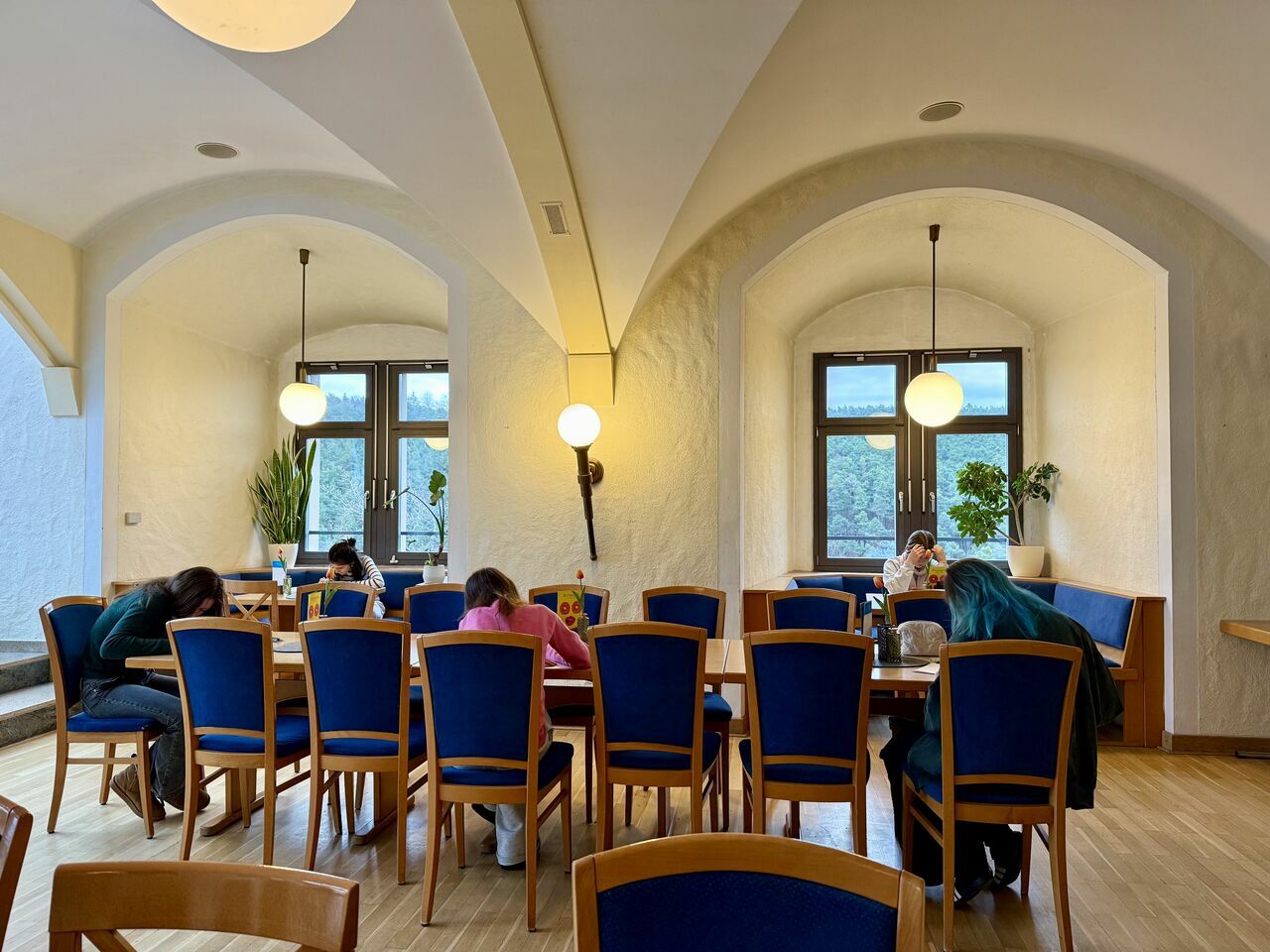 Während unserer Probenfahrt hatten wir lange und produktive Proben, bei denen wir uns untereinander besser kennenlernten, sodass wir auch viele entspannte und lustige Pausen miteinander verbrachen. Bei den Proben wurde viel gelacht, versprochen oder verlesen und es kam zu interessanten und lustigen Interpretationen; beispielsweise könnte das Stück doch auch mit einem Korb an den Helden oder dem Sieg der Bösen enden, oder?