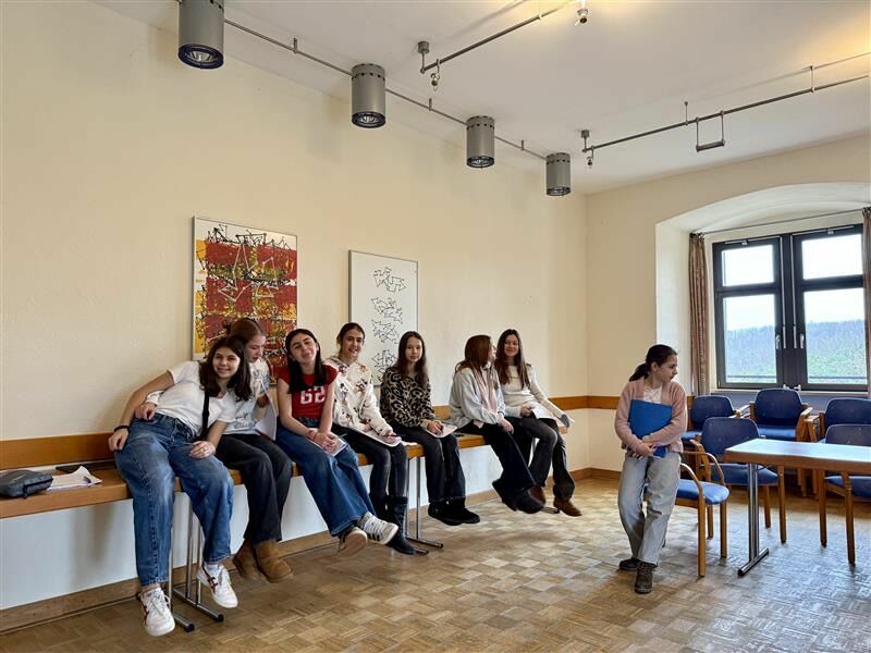 Drachen, vergiftete Dolche und mittelalterliches Drama: das und noch vieles mehr gab es in Altleiningen auf unserer Theaterfahrt mit Frau Hesse und Frau Schommer vom 12. bis 16.01.26. Nach unserer Ankunft fiel uns direkt ein zu unserem Stück passender Drachenbanner auf. Wir waren gleich von der schönen Jugendherberge, welche an die Ruinen einer Burg gebaut wurde, beeindruckt. Dort wurden wir freundlich empfangen und bekamen einen Probenraum zur Verfügung gestellt. An diesem wie auch den folgenden Tagen wurden wir von der Jugendherberge mit leckerem Essen versorgt.