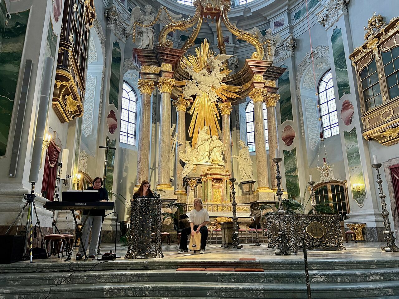 Mit dem Lied „Wir haben Gottes Spuren festgestellt“ wurde die Verbundenheit mit Gott noch einmal musikalisch zum Ausdruck gebracht. In den darauffolgenden Fürbitten brachten Samuel, Jonas, Mila, Nele, Gloria und Victoria (alle 10a) ihre Gedanken, Hoffnungen und Bitten für das bevorstehende Schuljahr vor Gott.