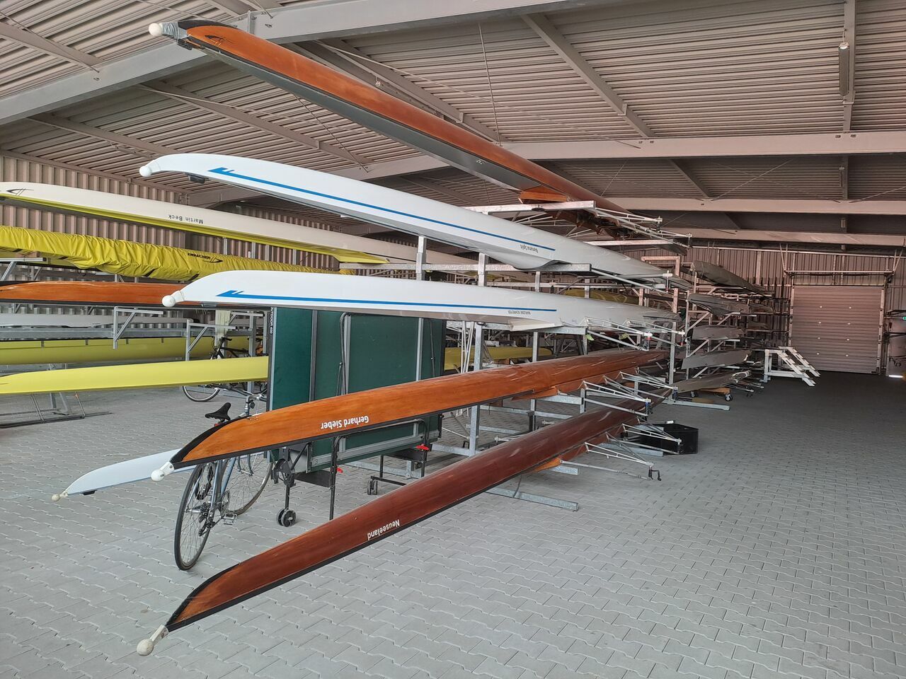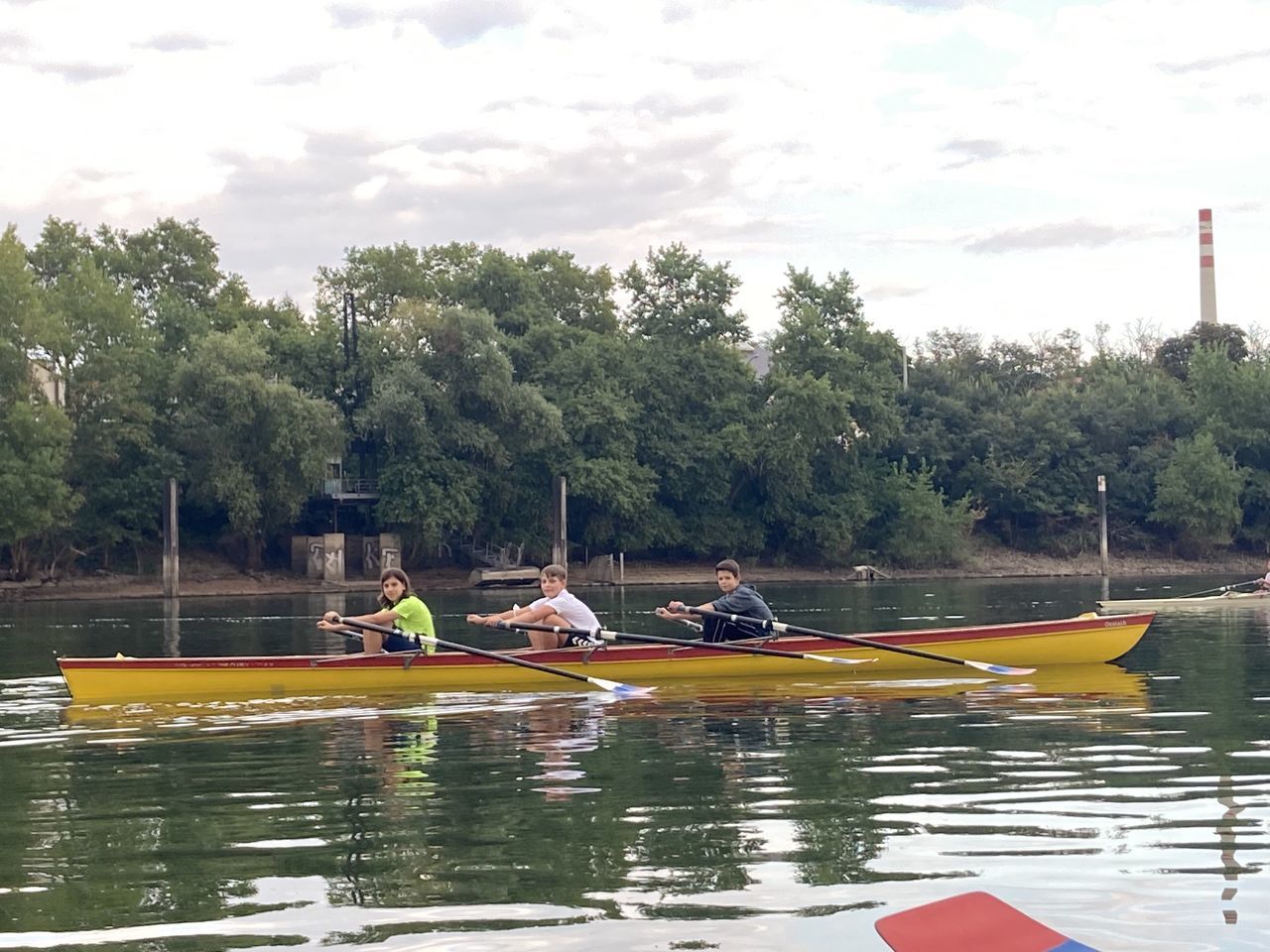 Im Sommer rudern auf dem Altrhein im Mannschaftsboot und Skiff (1er). Erlernen der Ruderbewegung und Kommandos, Umgang mit dem Bootsmaterial sowie Kennenlernen der Schifffahrtsordnung.