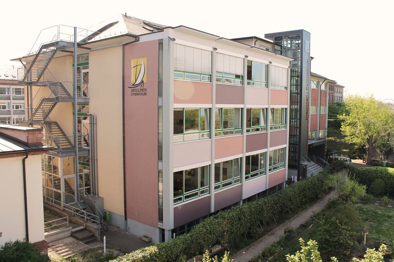 Das Schulgelände des Ursulinen-Gymnasiums besteht aus mehreren Schulhäusern, die durch einen eigenen Schulgarten miteinander verbunden sind. Somit kann der Blick, trotz zentraler Lage inmitten der Mannheimer Quadrate, ins Grüne schweifen. Zum Schulgelände gehört neben zwei Schulhöfen auch eine Kapelle, in der kleinere schulinterne Gottesdienste und Andachten stattfinden können.