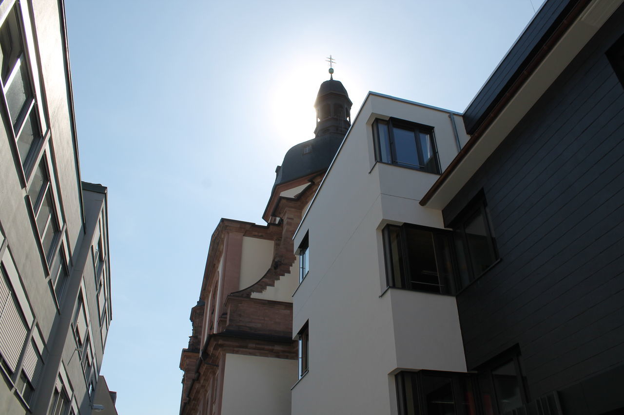 Die Schulleitung und das Sekretariat sind im Haupthaus zu finden, wie auch das lichtdurchflutete Foyer sowie die Turnhalle. Beide Räumlichkeiten sind großflächig und haben Zugang zum großen Schulhof, weshalb sie für Veranstaltungen wie z.B. den Adventsbasar oder das Sommerfest genutzt werden.