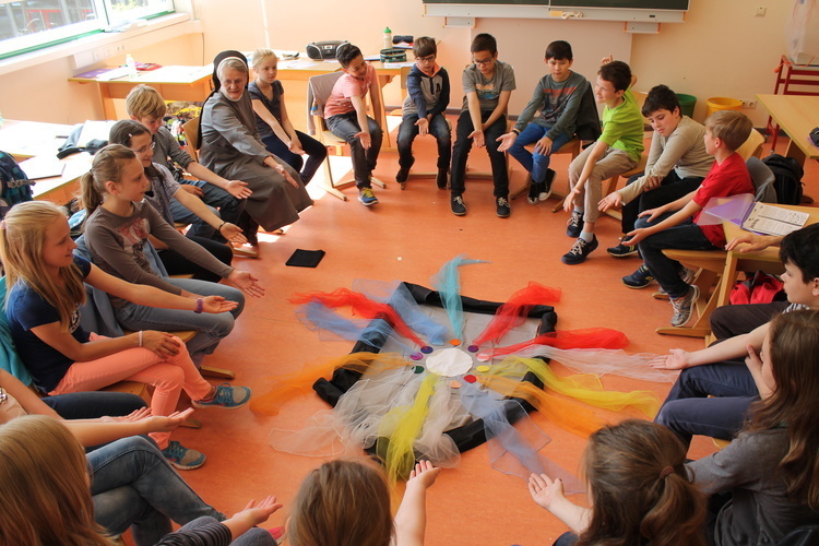 Alle Schülerinnen und Schüler - egal ob getauft oder nicht - nehmen am evangelischen oder katholischen Religionsunterricht teil. Wir bieten deshalb keinen Ethikunterricht an. Der Religionsunterricht wird durch viele freiwillige Angebote wie Gottesdienste oder Frühschichten, aber auch besondere Klassenfahrten wie Orientierungs- und Bibeltage ergänzt.